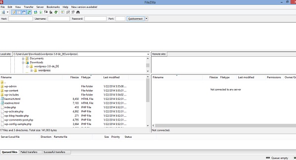 Damit Sie die WordPress Dateien auf dem Webserver installieren können, brauchen Sie ein FTP-Programm wie z.B. FileZilla. Diese Software ist genauso wie WordPress ebenso völlig kostenlos. Darauf sollten Sie beim Herunterladen achten, da es immer wieder findige Betrüger gibt, die dafür Geld nehmen wollen.